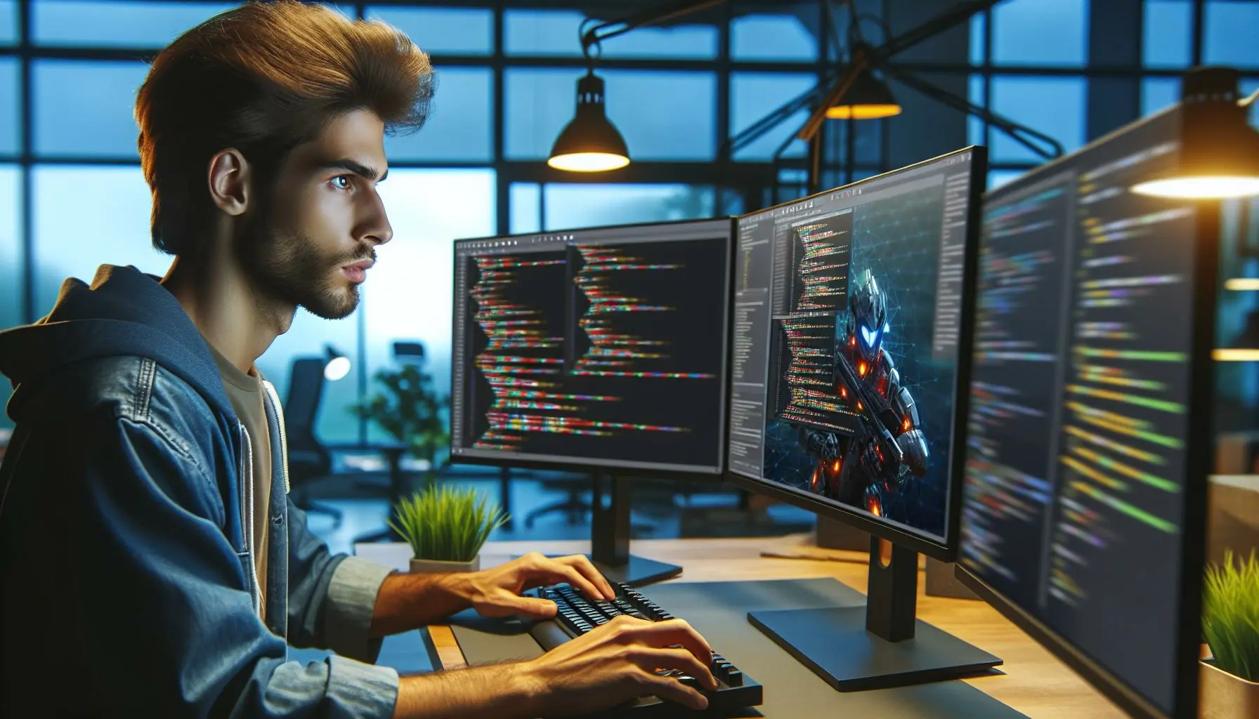 A game developer transforms creative concepts into playable digital experiences through code implementation, asset integration, and system optimization.